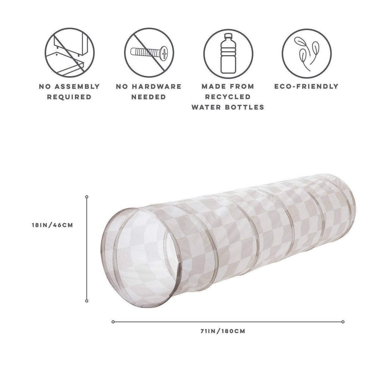 • tunel je lehký, snadno přenosný a jednoduchý na složení, což z něj činí skvělého společníka nejen doma, ale i venku