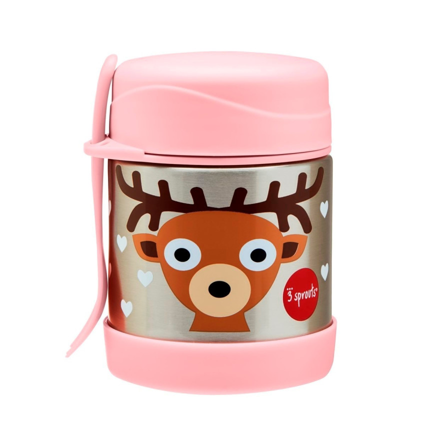 3 Sprouts Stainless Steel termoska na jídlo + vidlička - Deer Pink
