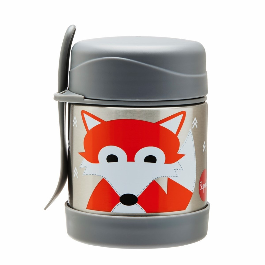 3 Sprouts Stainless Steel termoska na jídlo + vidlička - Fox Gray