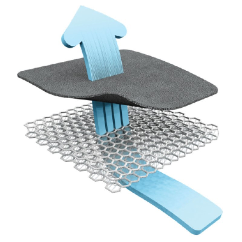 • vzduch může volně cirkulovat přes strukturu podložky, která je inspirována včelími plástvemi