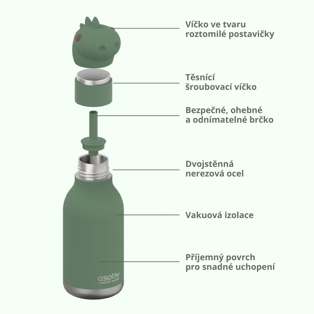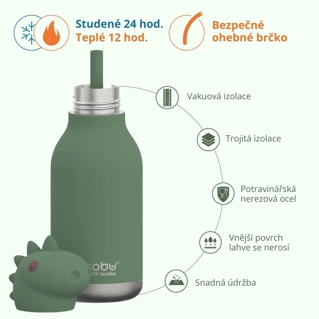 Láhev je vhodná do myčky, ale silikonovou hlavičku a brčko doporučujeme mýt ručně. Nelijte do lahve vařící nápoje, hrozí riziko opaření. Při použití teplých nápojů doporučujeme zvýšenou opatrnost a nenaklánění láhve s brčkem při pití. Nevhodné do mikrovlnné trouby.