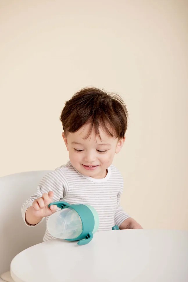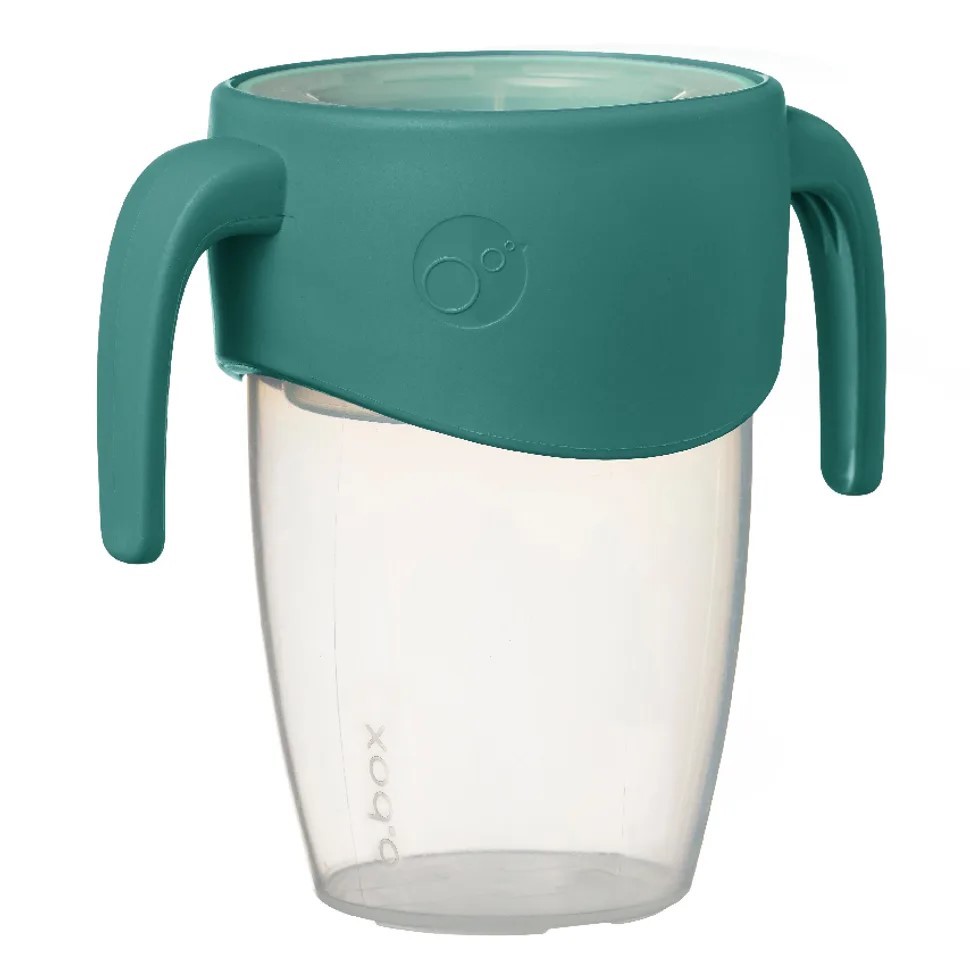 360° netekoucí učící hrneček od značky b.box dovoluje dětem nápoj z hrnečku jen usrkávat, ale hlavně učit se pít díky unikátnímu měkkému silikonovému okraji po celém okraji hrnečku