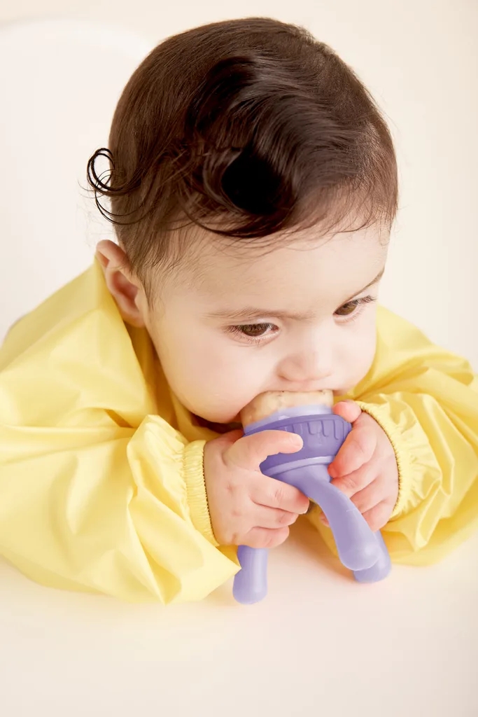 Vychlazené ovoce v síťce může pomoci s úlevou při růstu zoubků.