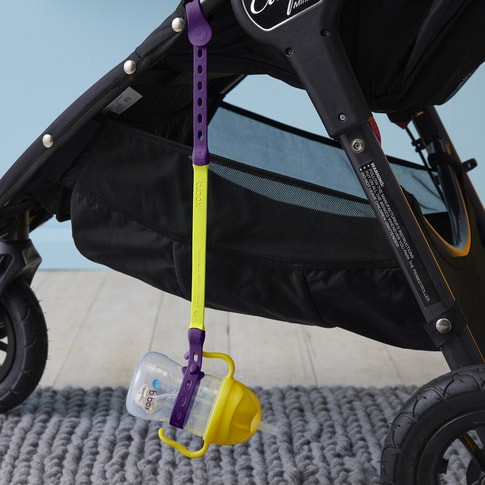 • stačí připevnit jeden konec ke kočárku a druhý k oblíbené hračce, hrníčku nebo lahvičce
