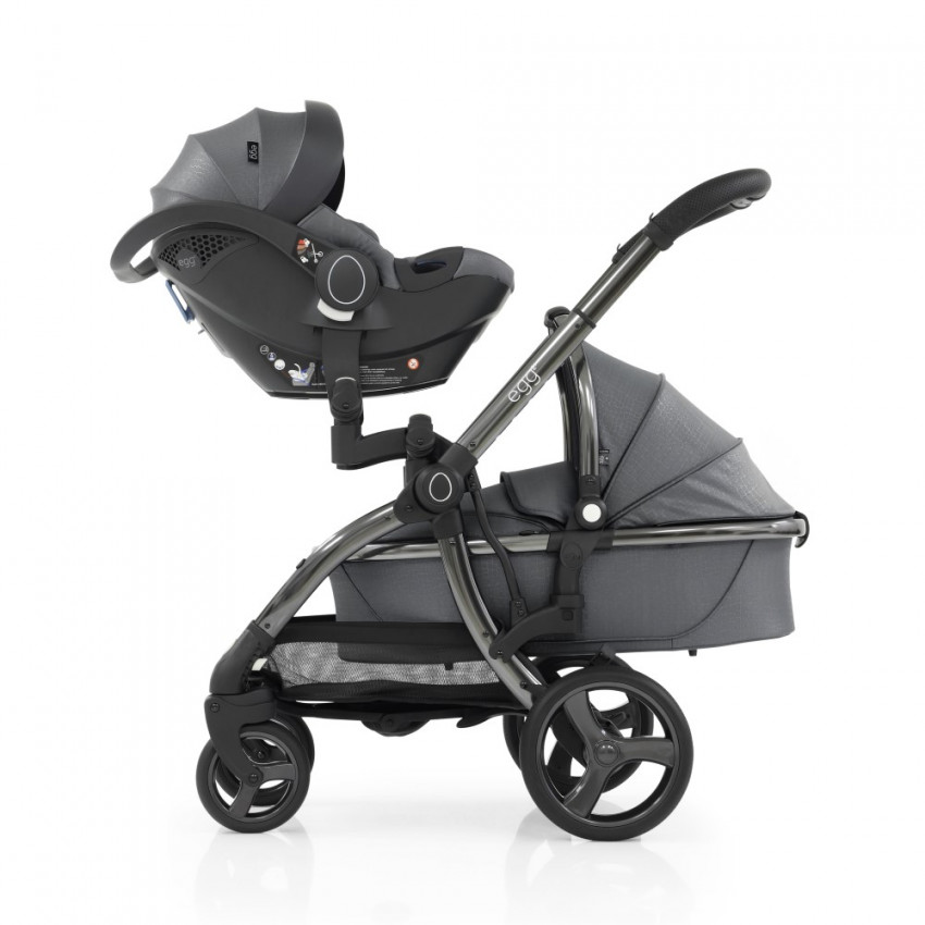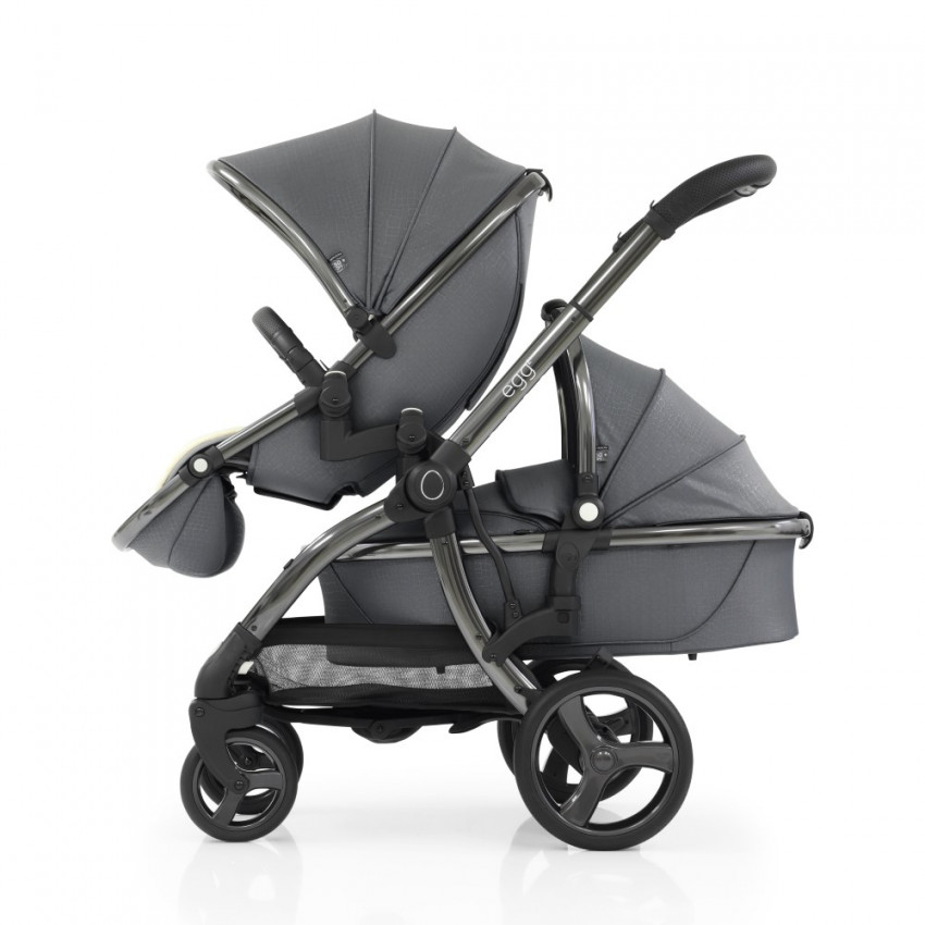 Prostřednictvím setu adaptérů ve tvaru “S” je možné z kočárku Egg 2 snadno vytvořit sourozenecký kočárek v následujících variantách: