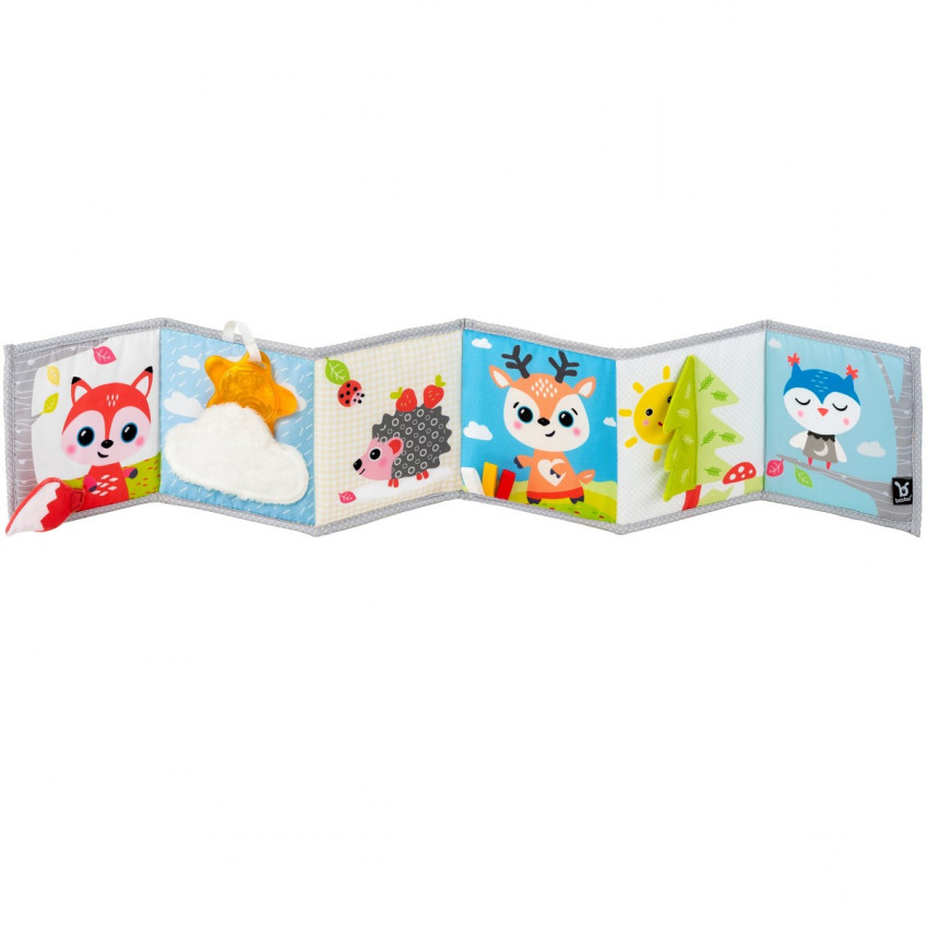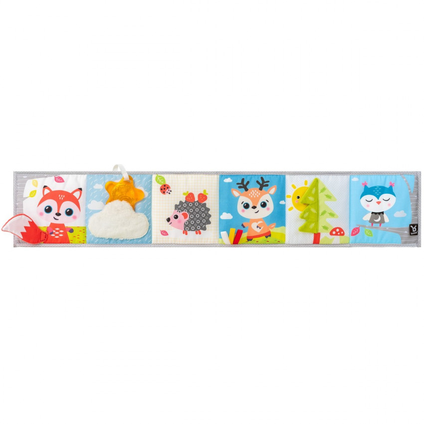 barevná oboustranná knížka pro děti vhodná nad postýlku, kočárek nebo autosedačku