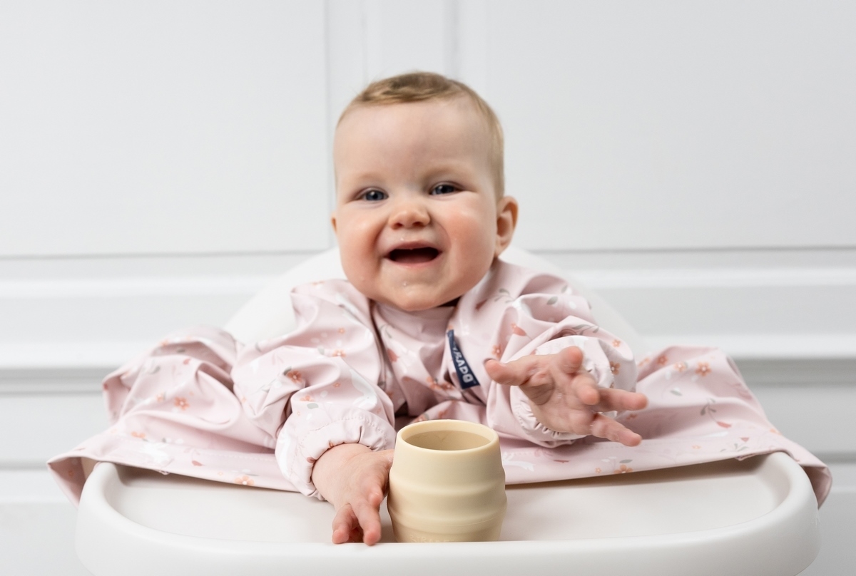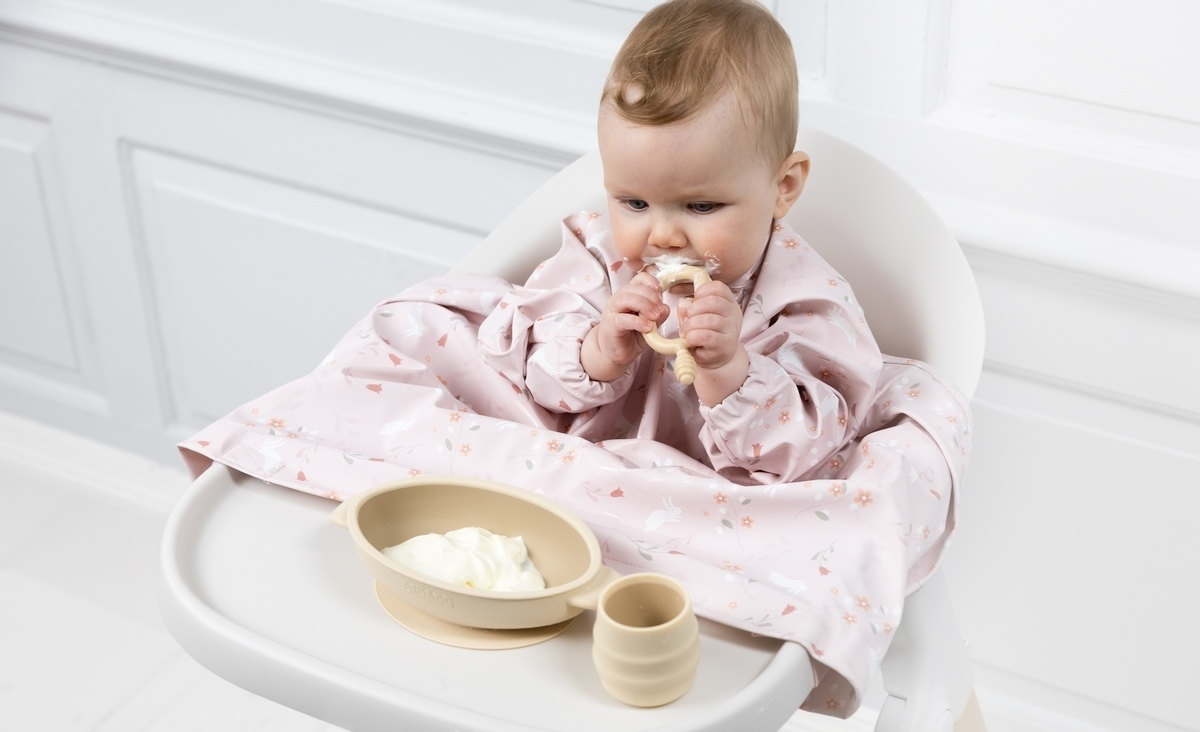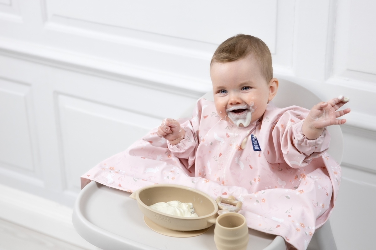 Nastavitelný pásek v dolní části bryndáku neslouží jako bezpečnostní prvek a nesmí být utažen pod jídelním pultíkem natěsno. Pásek neutahujte a nechte volně pod pultíkem. Dítě nenechávejte v židličce bez dozoru a nevzdalujte se od dítěte v době, kdy jí.