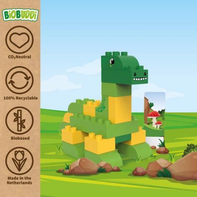 Hračky a kostky BiOBUDDi jsou vyrobeny z cukrové třtiny a v Nizozemsku. Barevné stavebnice jsou nejen šetrné k životnímu prostředí, ale také recyklovatelné a šetrné k dětem. Celý výrobní proces od A do Z je CO2 neutrální. Hračky byly důkladně testovány a splňují všechny podmínky.