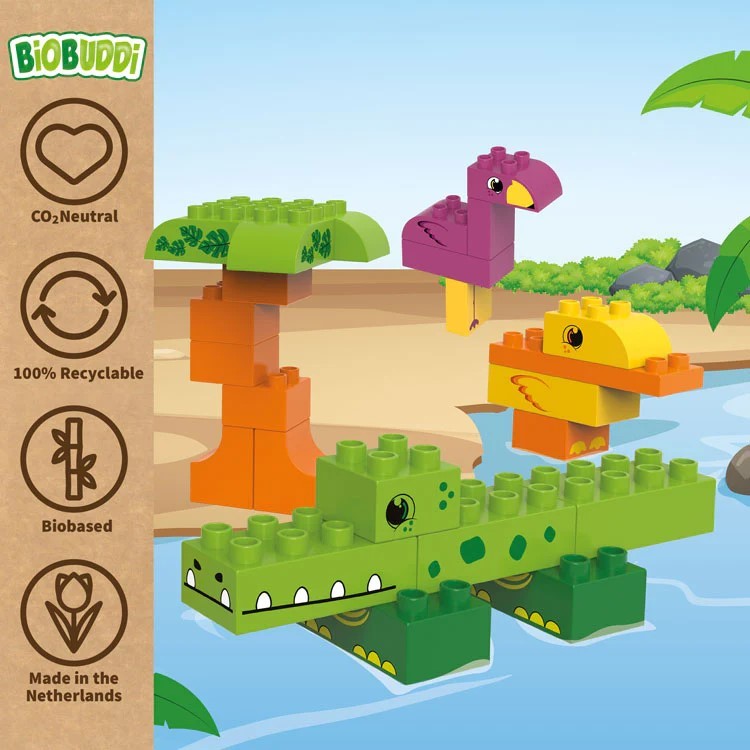 Hračky a kostky BiOBUDDi jsou vyrobeny z cukrové třtiny a v Nizozemsku. Barevné stavebnice jsou nejen šetrné k životnímu prostředí, ale také recyklovatelné a šetrné k dětem. Celý výrobní proces od A do Z je CO2 neutrální. Hračky byly důkladně testovány a splňují všechny podmínky.