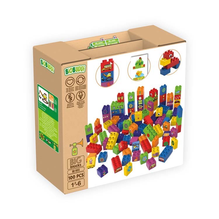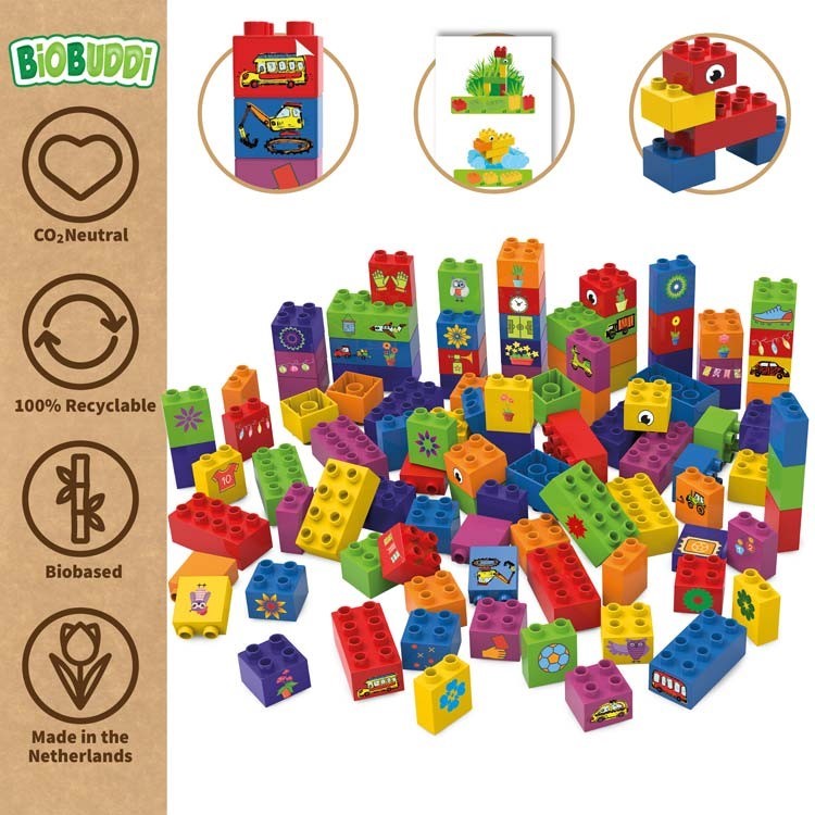 Hračky a kostky BiOBUDDi jsou vyrobeny z cukrové třtiny a v Nizozemsku. Barevné stavebnice jsou nejen šetrné k životnímu prostředí, ale také recyklovatelné a šetrné k dětem. Celý výrobní proces od A do Z je CO2 neutrální. Hračky byly důkladně testovány a splňují všechny podmínky.