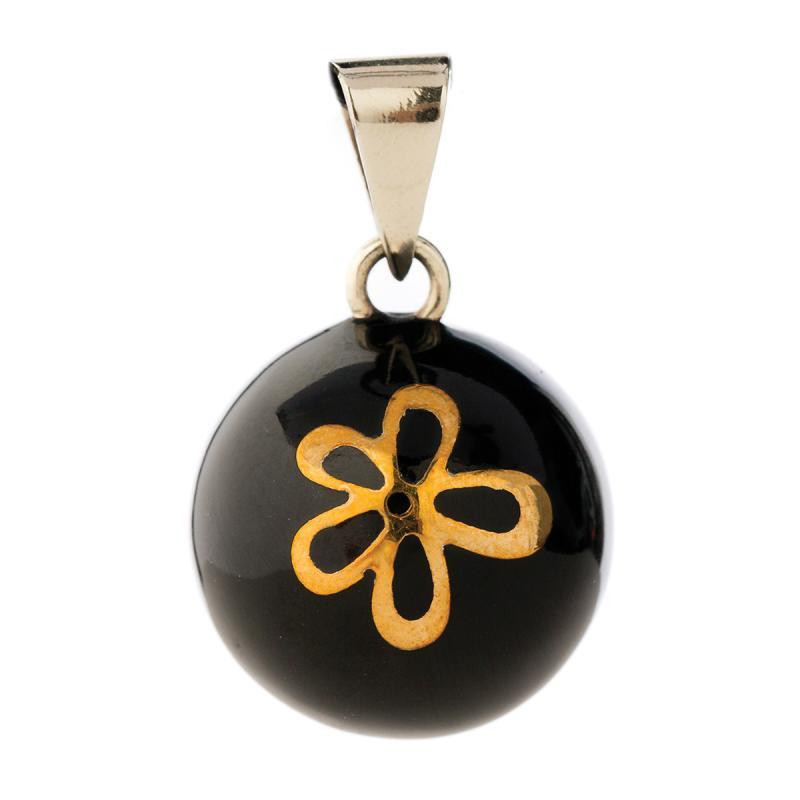 Bola originální mexický hudební přívěšek - Black with gold flower