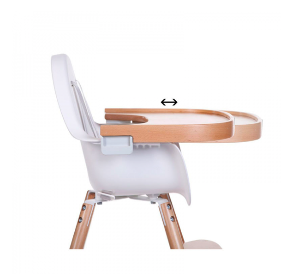 jídelní pult k židličce Childhome Evolu 2 je možné nastavit do dvou poloh dle velikosti dítěte