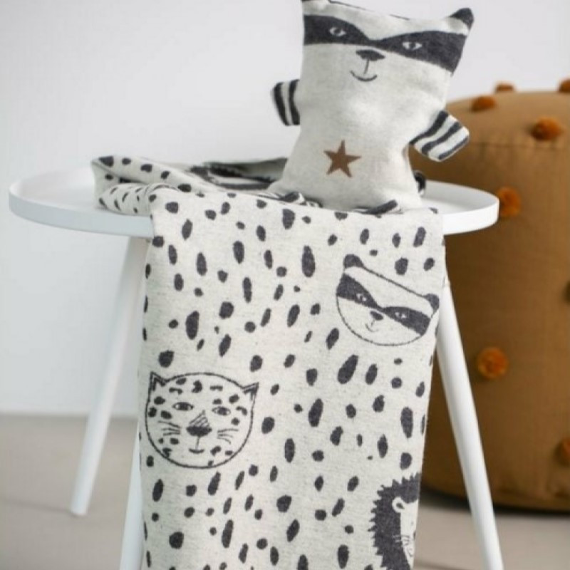 David Fussenegger Juwel dětská deka Leopard, Racoon & Lion 70 x 90 cm - Offwhite