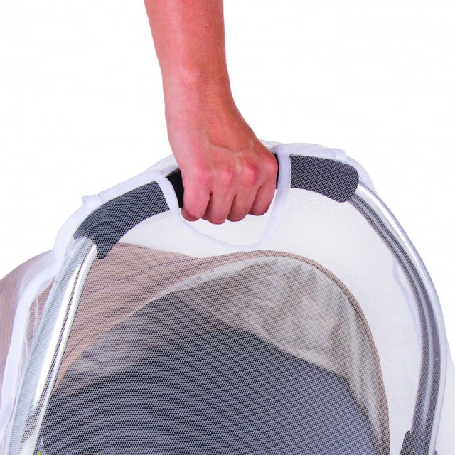 síťka je mimořádně transparentní, vaše dítě bude mít výhled (všeobecně platí, že přes tmavší barvu síťoviny vidíte na dítě - a dítě ven lépe, než přes světlou)