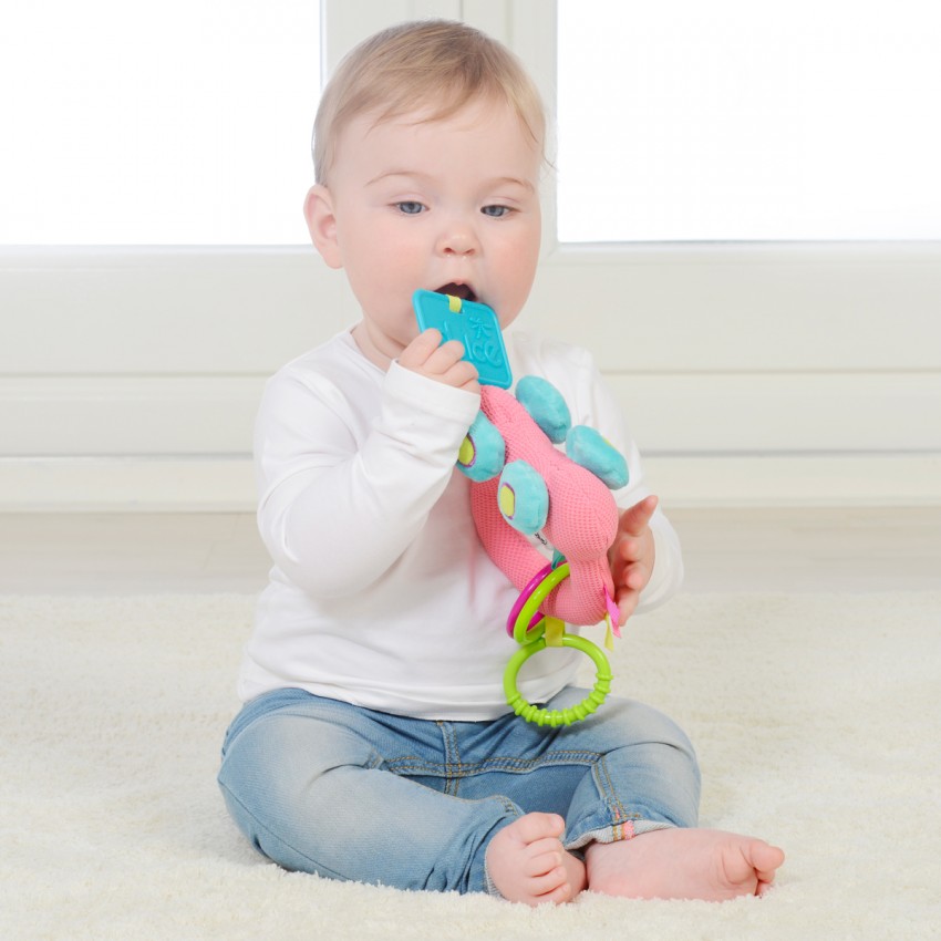 • díky C kroužku lze připevnit na postýlku, autosedačku nebo kočárek