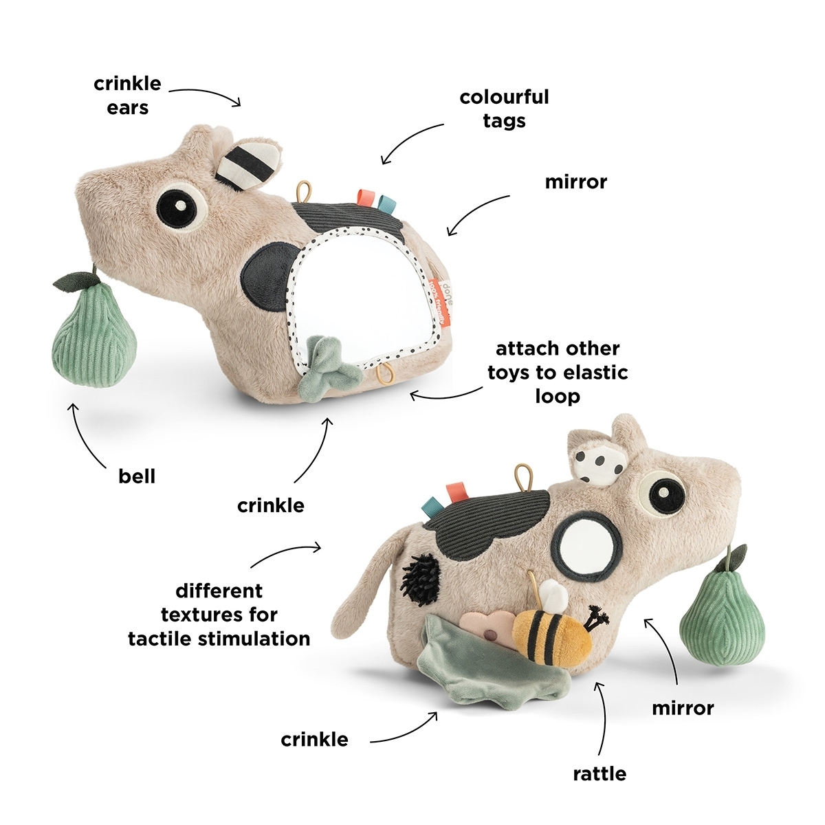 Všechny produkty Done by Deer jsou testovány podle přísných evropských norem a jsou proto bezpečné pro používání dětmi. Tato hračka je testována a splňuje evropskou normu pro hračky EN 71.