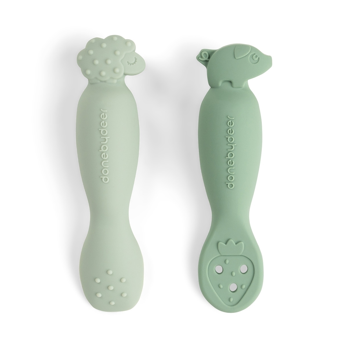 Done by Deer Silikonové lžičky Tiny Farm, 2 ks - Zelené - obrázek Done by Deer Silikonové lžičky Tiny Farm, 2 ks - Zelené - obrázek Done by Deer Silikonové lžičky Tiny Farm, 2 ks - Zelené - obrázek