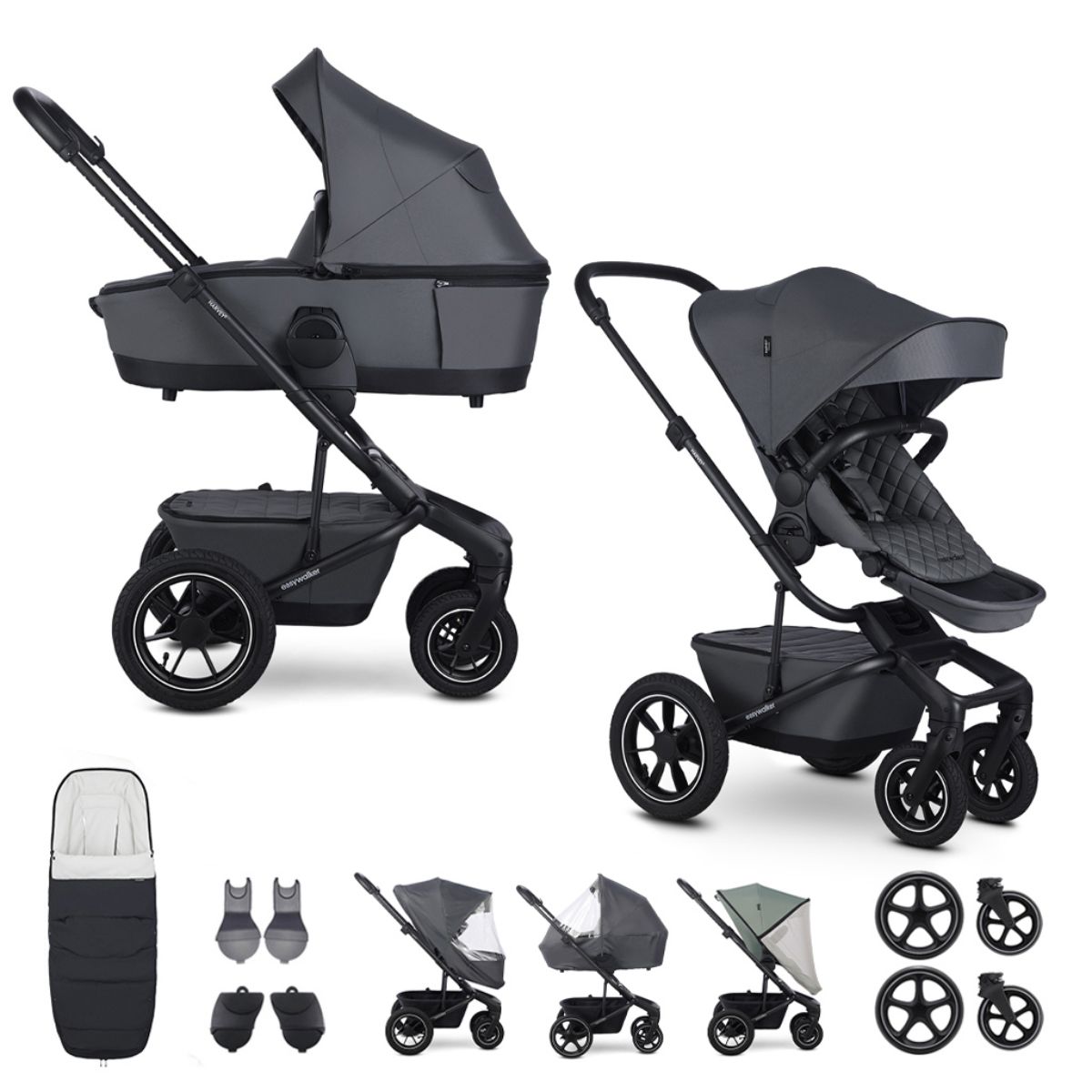 EasyWalker Harvey5 Air XXL Set Kombinovaný kočárek Premium s příslušenstvím - Mineral Grey