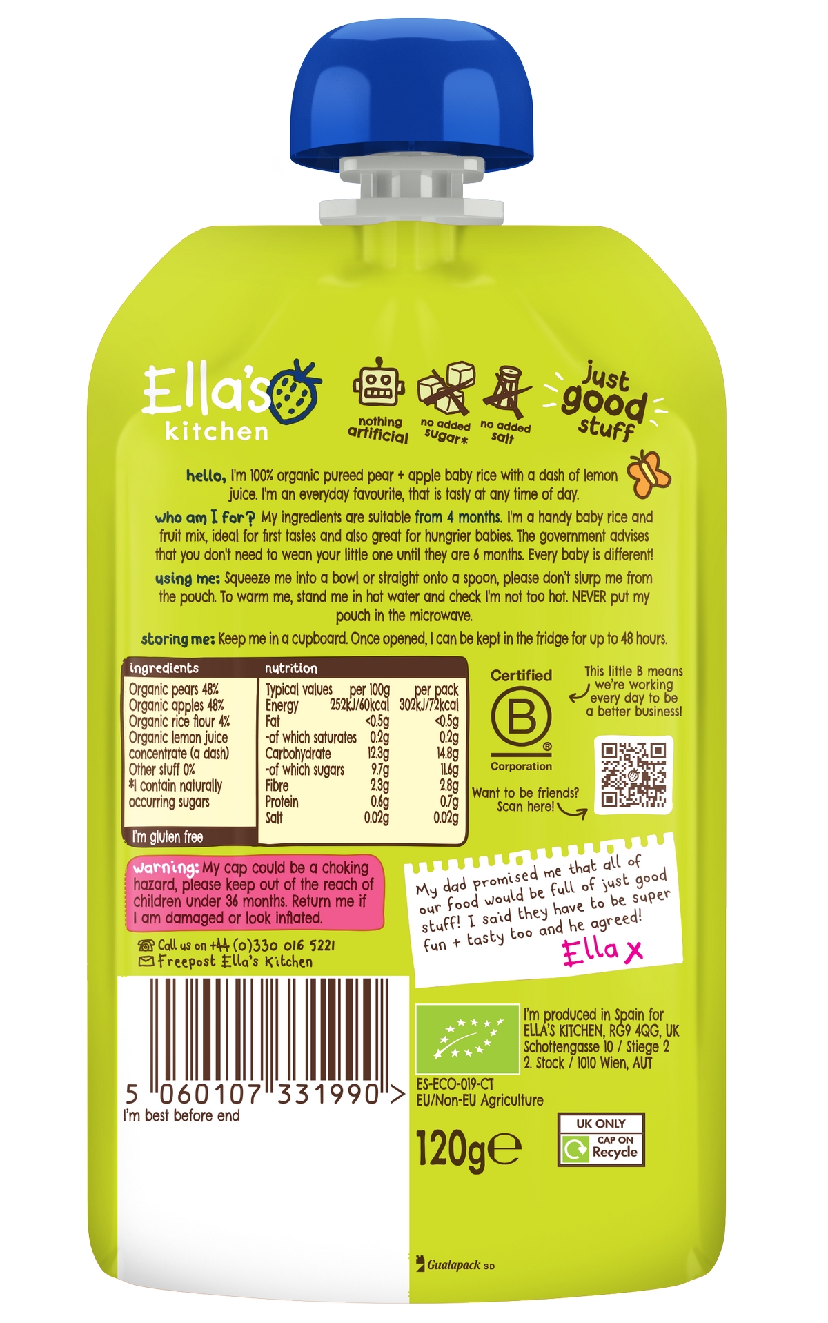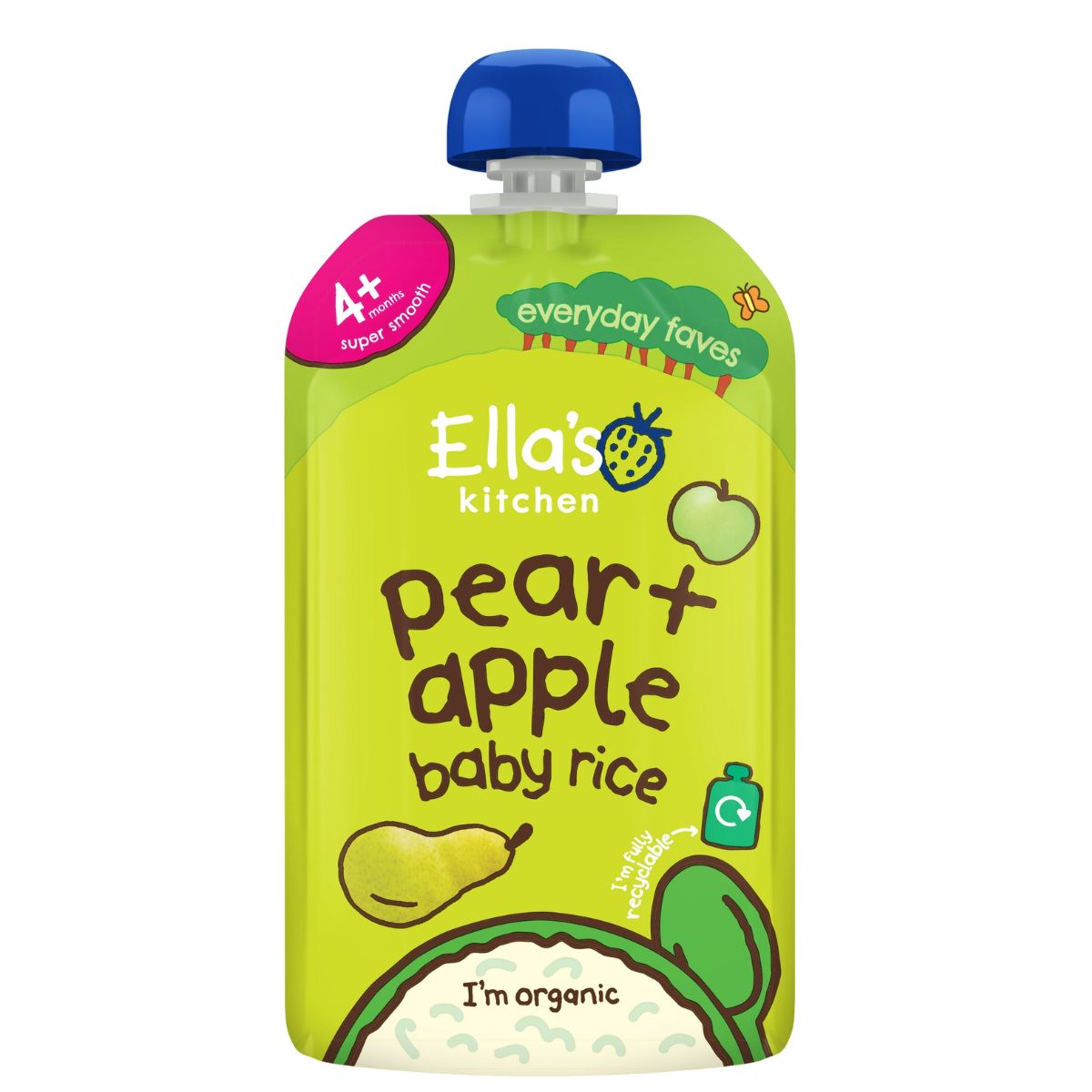 Složení: BIO hrušky 48 %, BIO jablka 48 %, BIO rýžová mouka 4 %, koncentrát BIO citronové šťávy