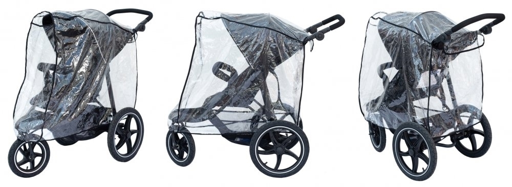 • pláštěnka pokrývá celý kočárek až ke kolečkům, včetně úložného košíku