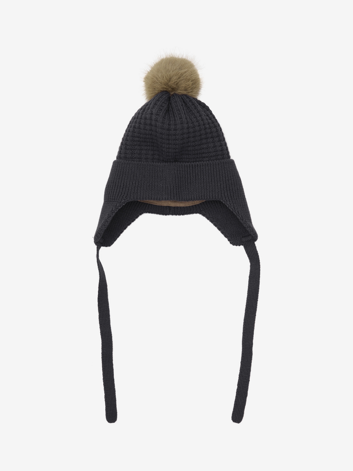 En Fant Pletená čepice s bambulí a zavazováním - Ebony, vel. 50