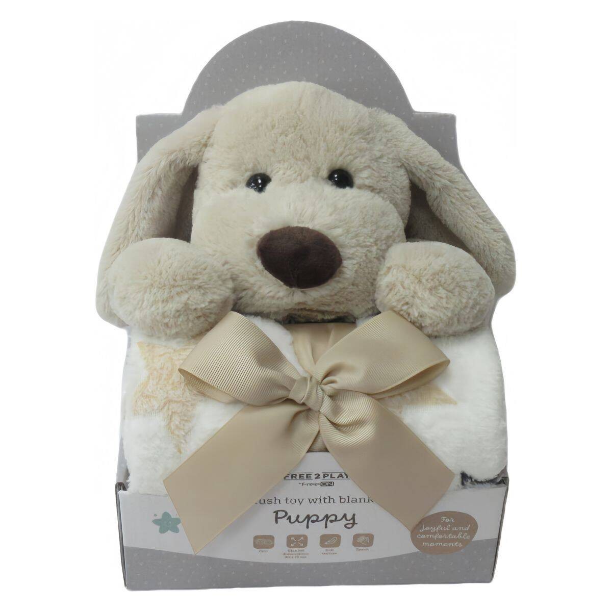 FreeOn Free2Play Plyšová hračka s dekou - Puppy Brown/White - obrázek FreeOn Free2Play Plyšová hračka s dekou - Puppy Brown/White - obrázek
