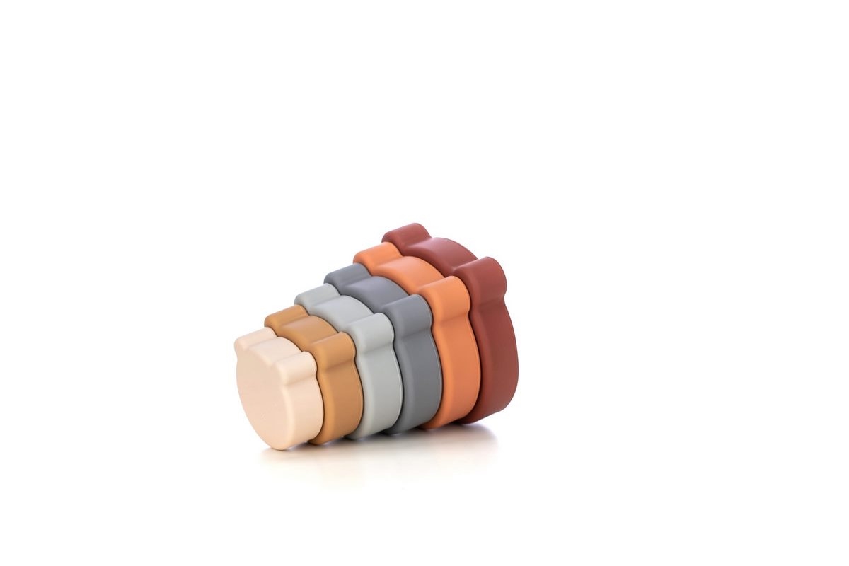 • sada obsahuje 7 různě barevných a velikostí silikonových stavebních bloků, které lze skládat na sebe