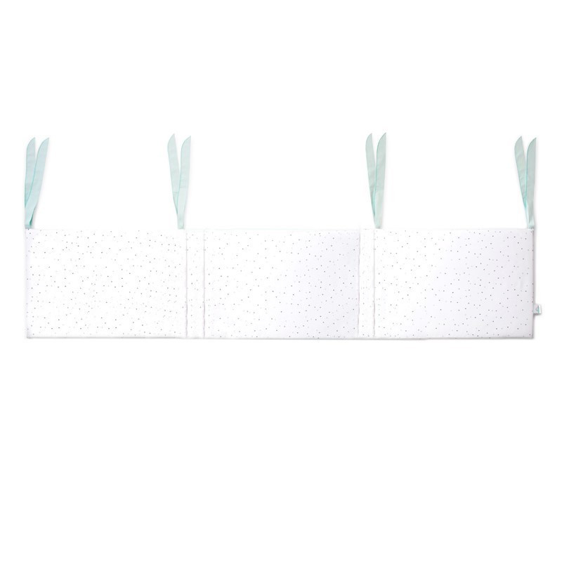 • mantinel stačí ovinout kolem dětské postýlky, připevnit pomocí šňůrek a vytvořit tak miminku útulné prostředí pro odpočinek