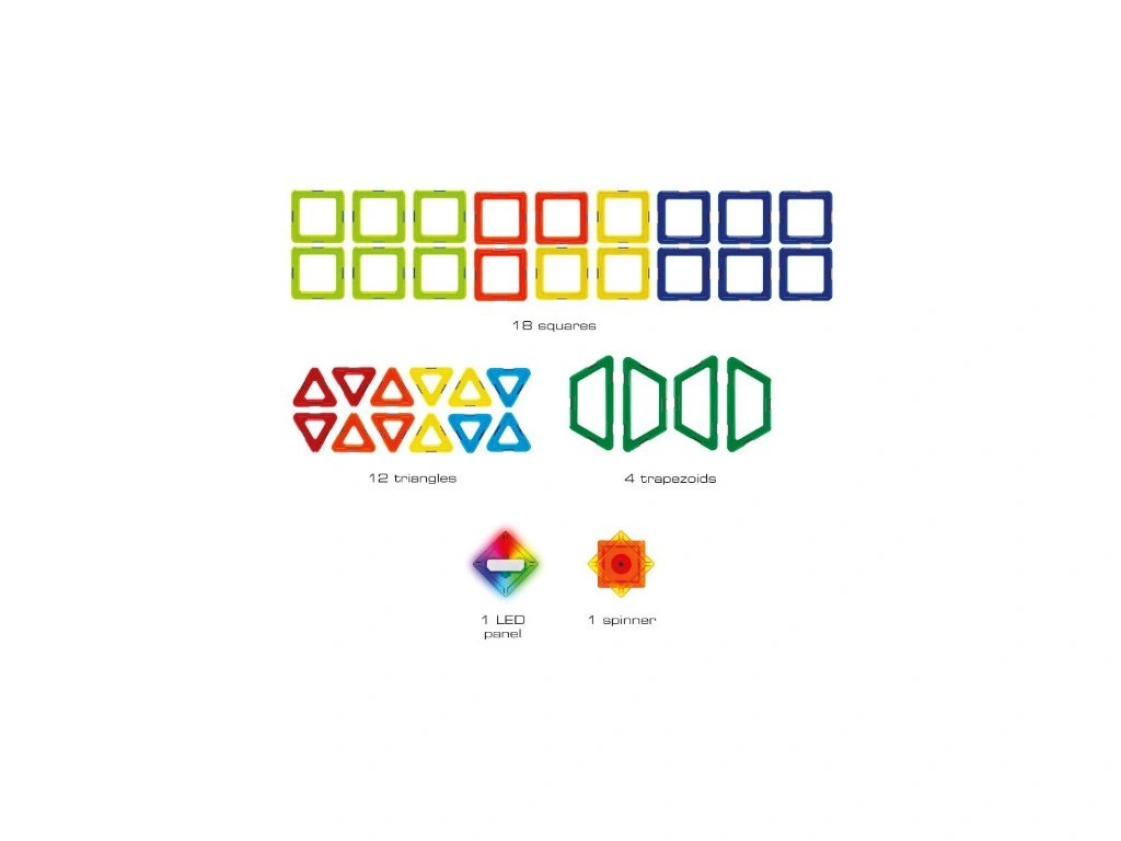 stavebice obsahuje 36dílků, 1 spinner a 1 LED panel