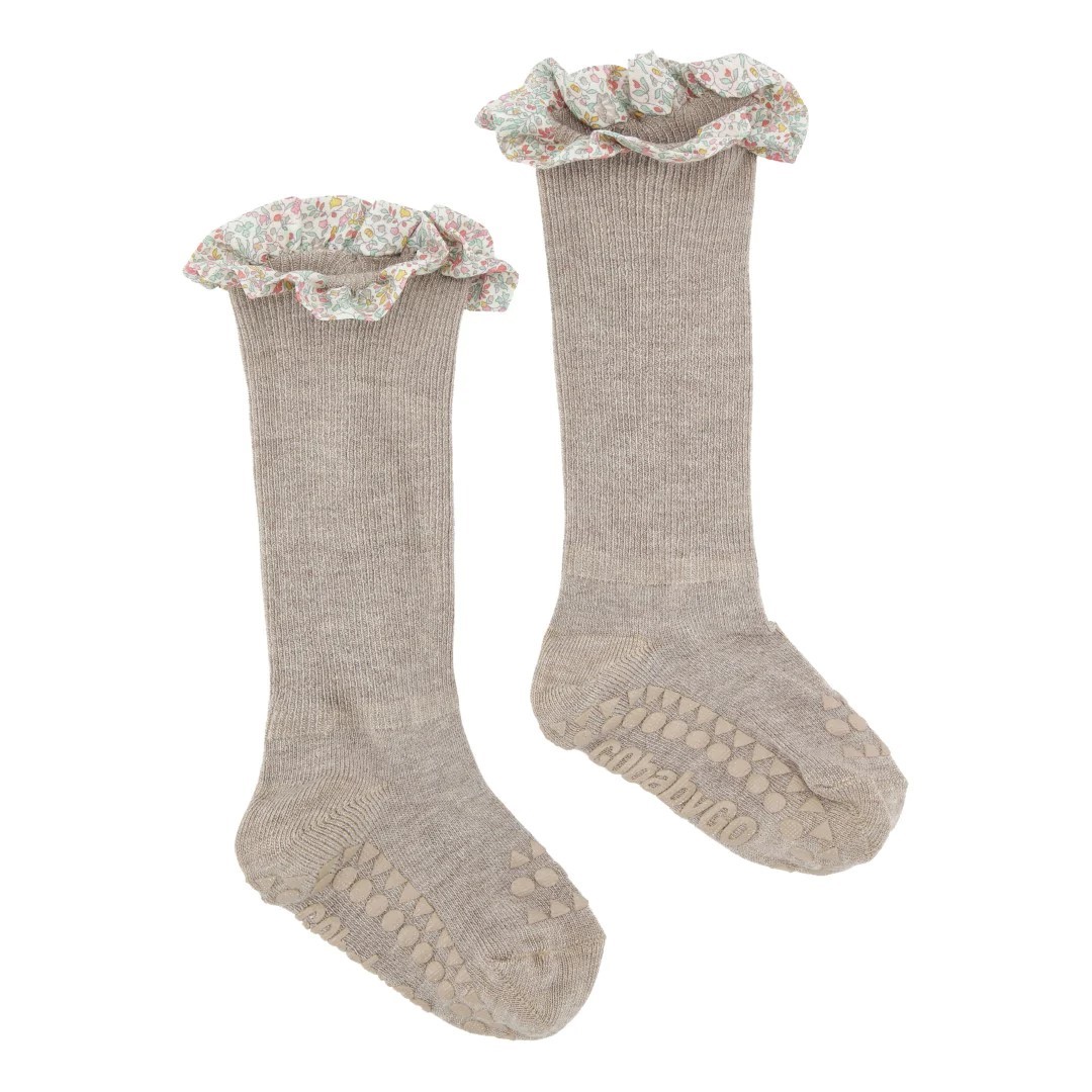 GoBabyGo Protiskluzové ponožky Bamboo - Liberty Grey Melange, vel. 1 - 2 roky