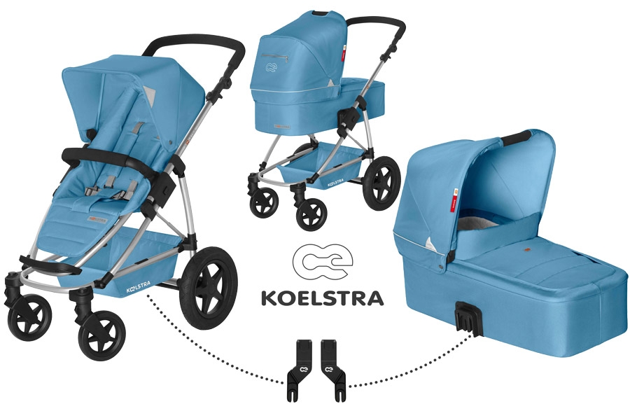 • kombinovaný kočárek Koelstra Binque Daily obsahuje: podvozek, hlubokou korbičku s nánožníkem, sportovní sedačku s nánožníkem a adaptér na autosedačky s upevněním "Maxi Cosi"