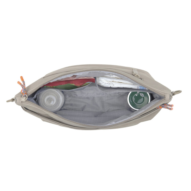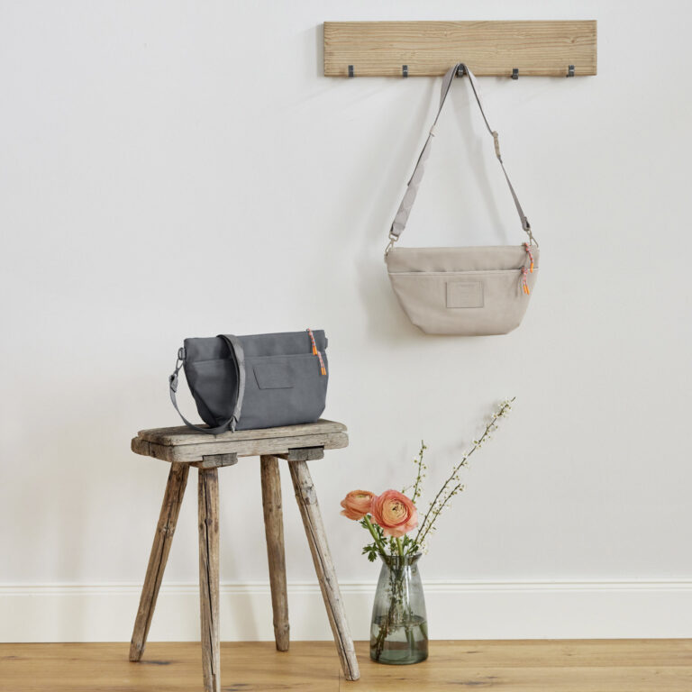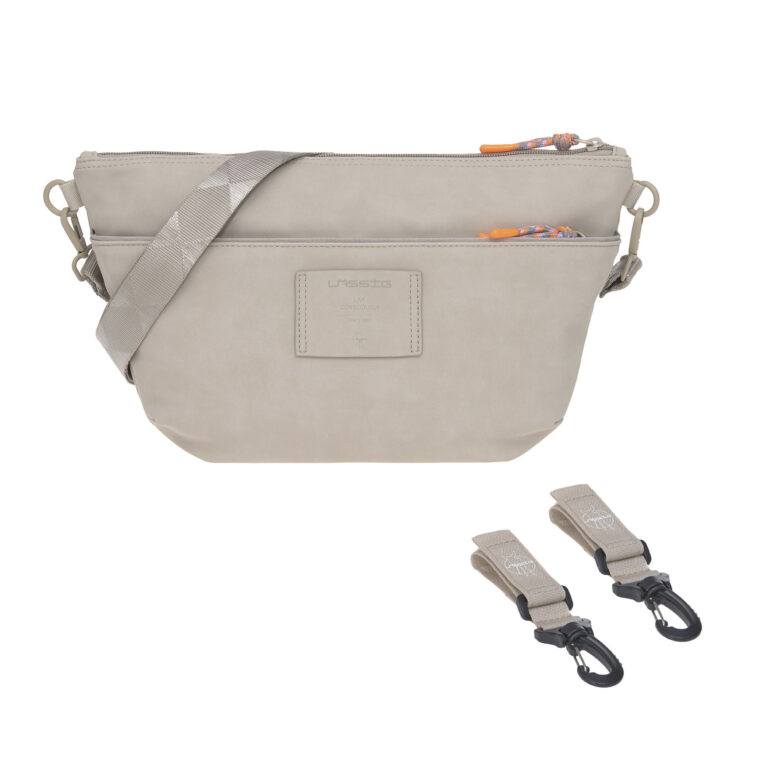 • lze připevnit na kočárek pomocí háčků, nosit přes rameno jako kabelku nebo cross bag