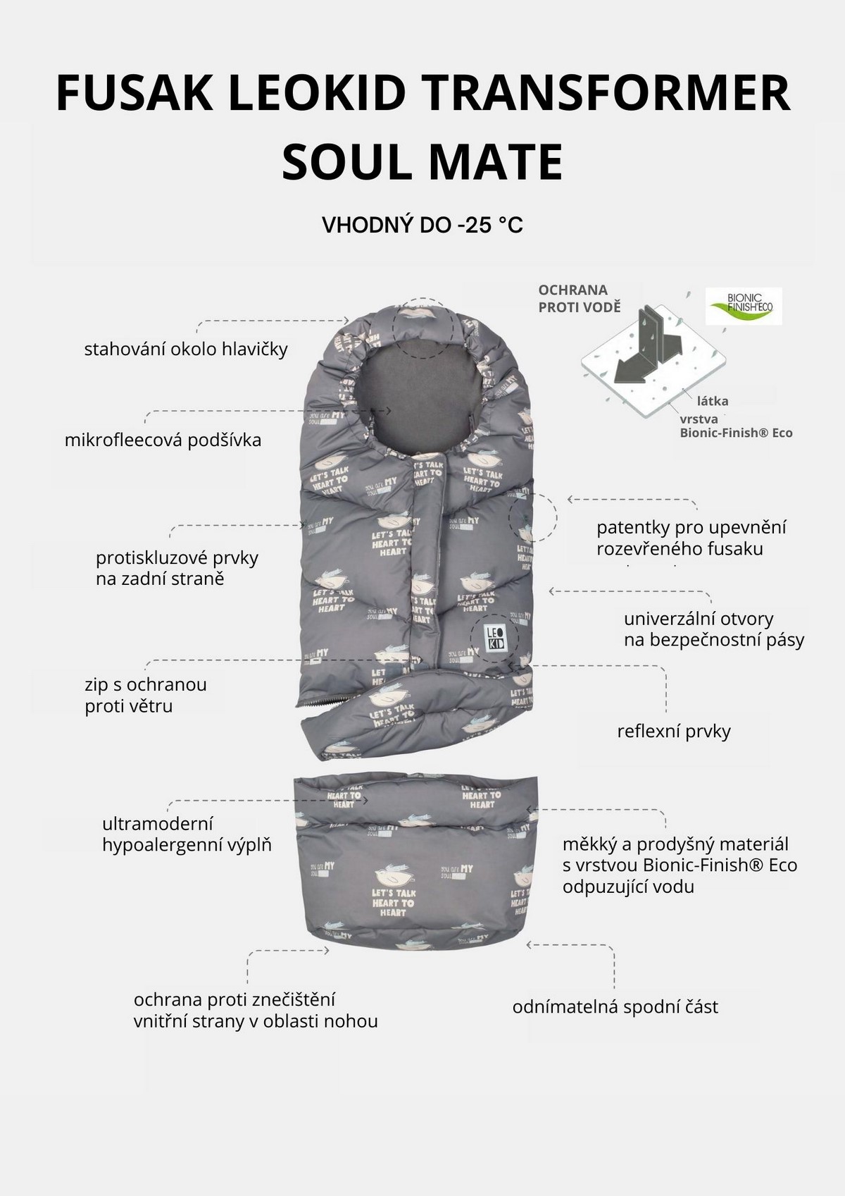 • díky odepínací spodní části fusak využijete v autosedačce, hluboké korbičce i ve sportovním kočárku