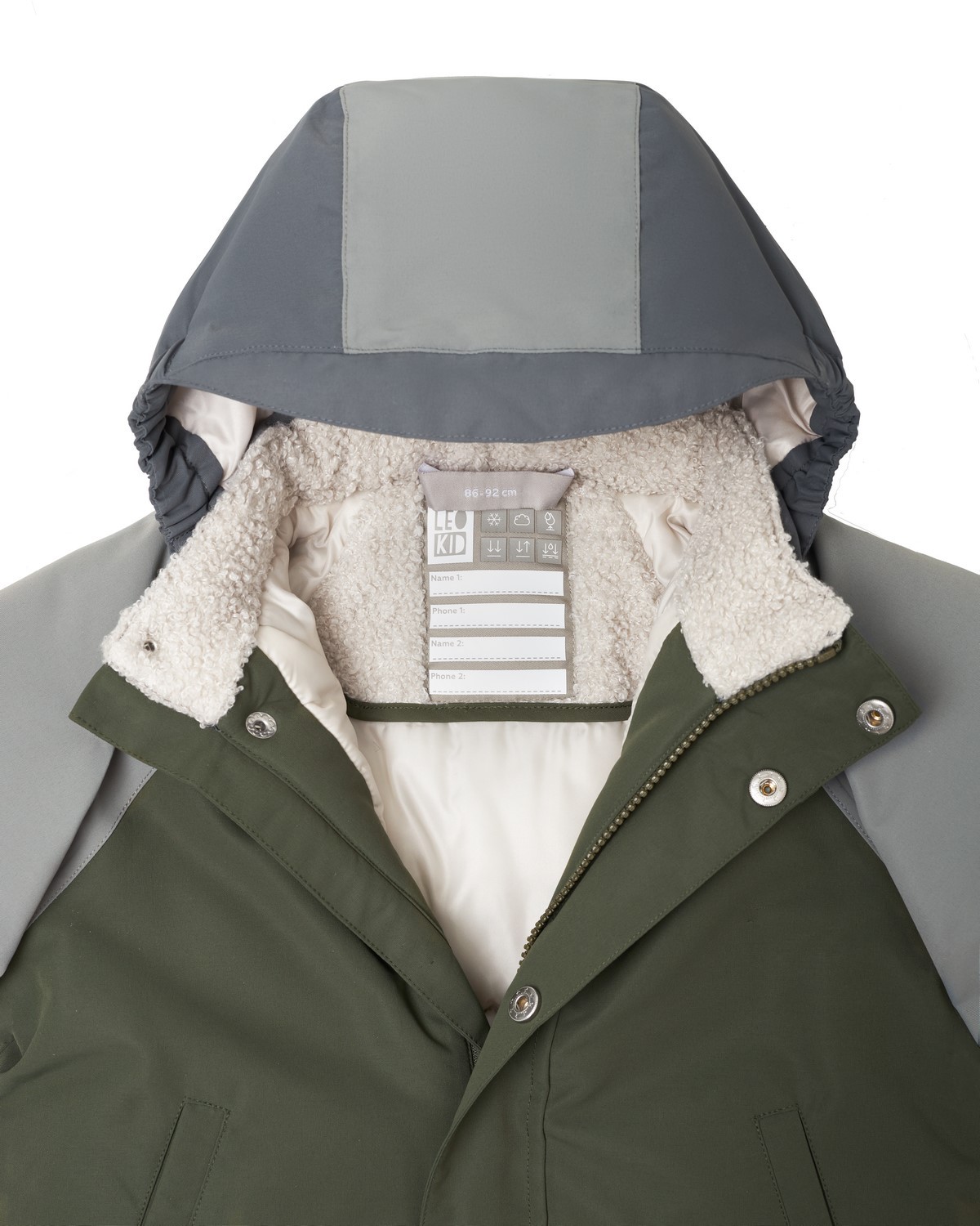 • příslušenství: plastový zip s kovovým jezdcem, silikonová nášivka s logem Leokid, plastové knoflíky