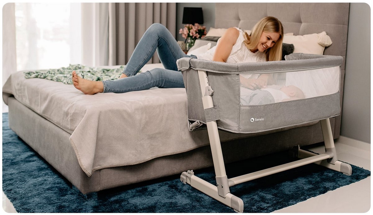 multifunkční model Theo 2v1 je chytrou kombinací volně stojící postýlky, postýlky k posteli a cestovní postýlky
