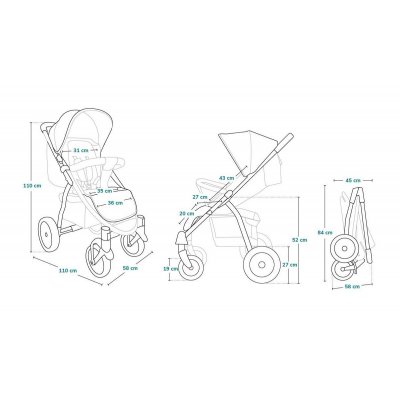 díky velkému průměru koleček je kočárek snadno ovladatelný, zatímco účinné tlumiče podstatně snižují vibrace