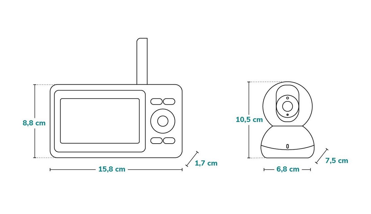 balení obsahuje: monitor, kameru, napájecí kabel, napájecí zástrčku, návod k použití