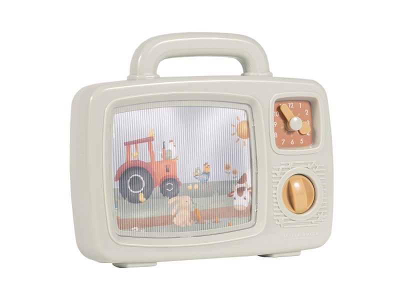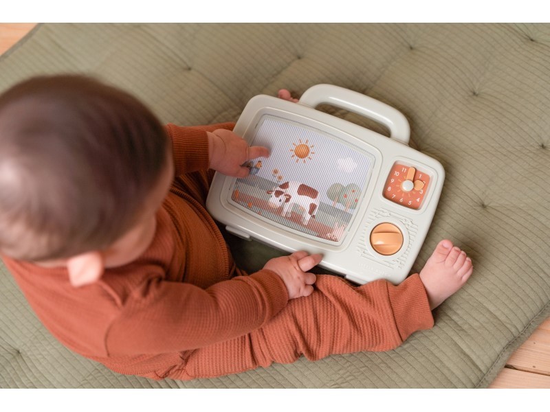 • první televize pro vaše dítě po otočení knoflíku hraje příjemnou melodii a obrázky motivů ze života na farmě na displeji se začnou pohybovat