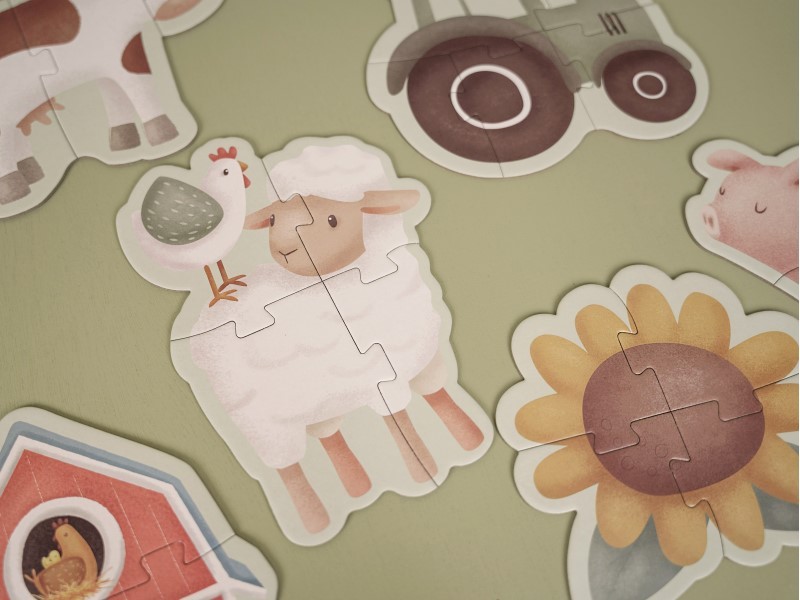 • sada obsahuje 6 variant puzzle skládaček pro nejmenší s krásnými ilustracemi ze života na farmě
