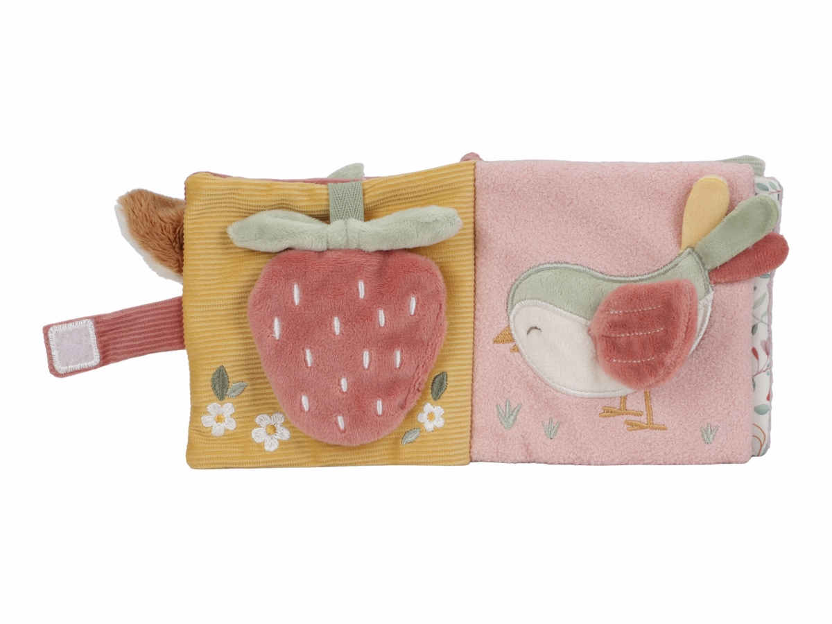 • měkká textilní knížka s krásnými motivy ze života na zahradě upoutá pozornost vašeho dítěte množstvím aktivit, ukrytých na jednotlivých stránkách