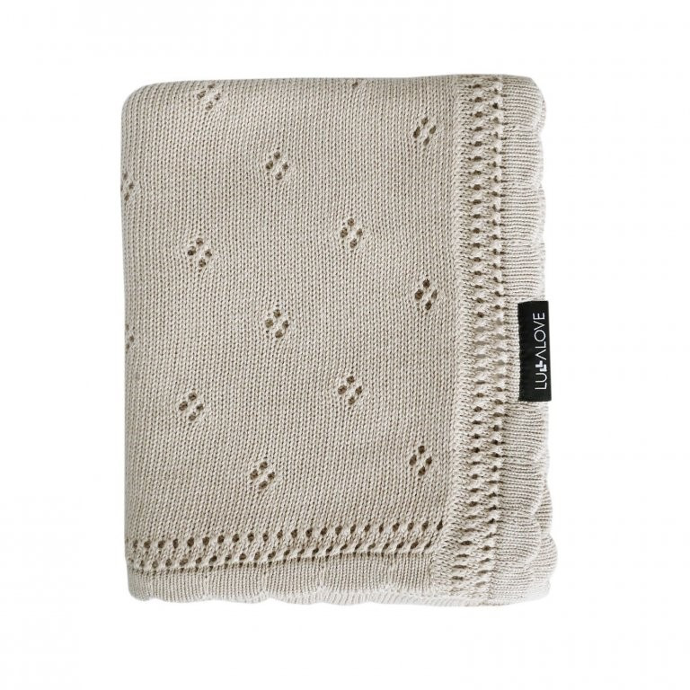 Lullalove přikrývka je vyrobena ze 100% přírodní příze a i přes ažurkové vazby poskytuje děťátku tepelnou pohodu