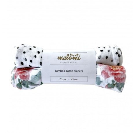 Malomi Kids bambusové Tetra pleny 2 ks - Dots/Peony