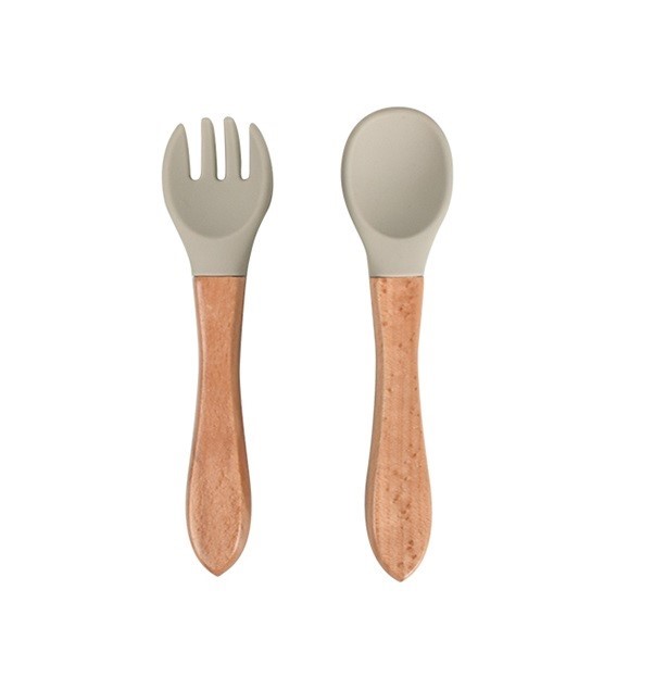 Martons Dětský příbor vidlička a lžička s dřevěnou rukojetí - Light Beige