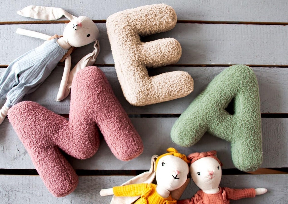 • celé jméno, milý pozdrav, iniciály vašeho miminka – s polštářky ve tvaru písmen Mealini vykouzlíte slova hebká jako bavlna