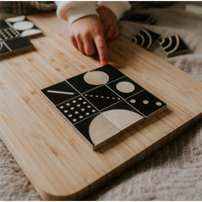 kontrastní kostky mají v sadě karty s kompozicemi, které slouží jako vzor pro skládání