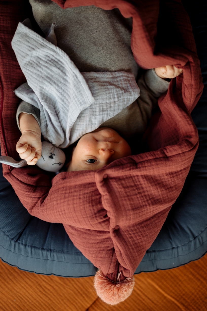• usínáček je ušit z dvojité gázoviny, kterou možná znáte jako mušelín - jde o neskutečně jemný, prodyšný a příjemný materiál
