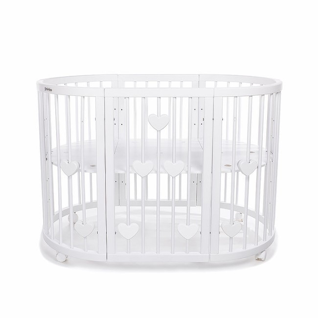 Mimiko kulatá postýlka 9v1 Hearts - White
