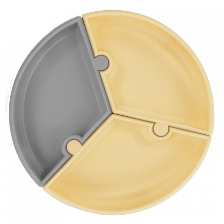 Minikoioi talíř puzzle silikonový s přísavkou - Grey/Yellow