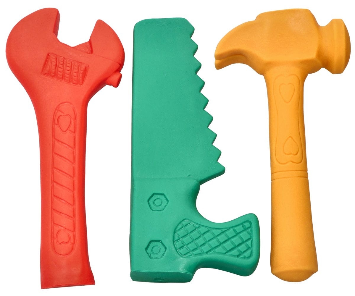 • sada obsahuje kladivo, pilku a klíč, všechny v trendy pastelových barvách s hravými vzory, které stimulují smysly a podporují kreativitu