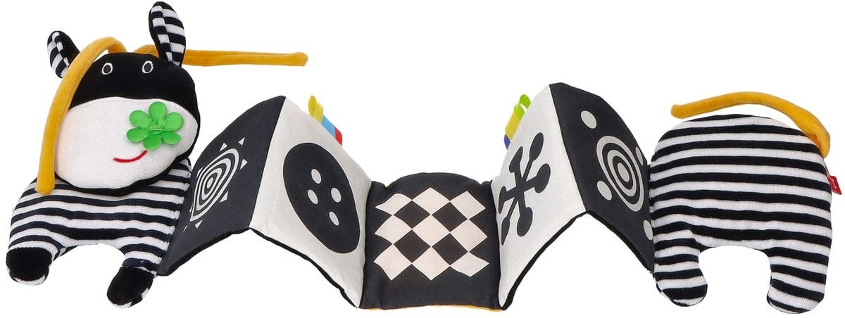 • šňůrky umožňují zavěsit leporelo na postýlku, kočárek nebo autosedačku - hračka je tak vždy po ruce